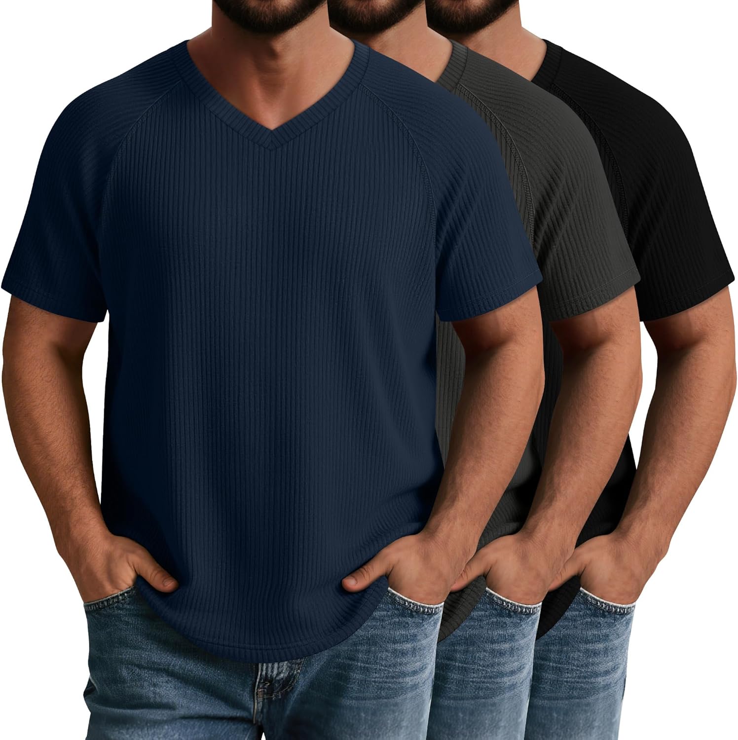 Riyiper 3 Pack Men's Big and Tall T-Shirts V Neck Ribbed Raglan Short Sleeve Tees Plus Size Loose Fit Casual Basic Tops