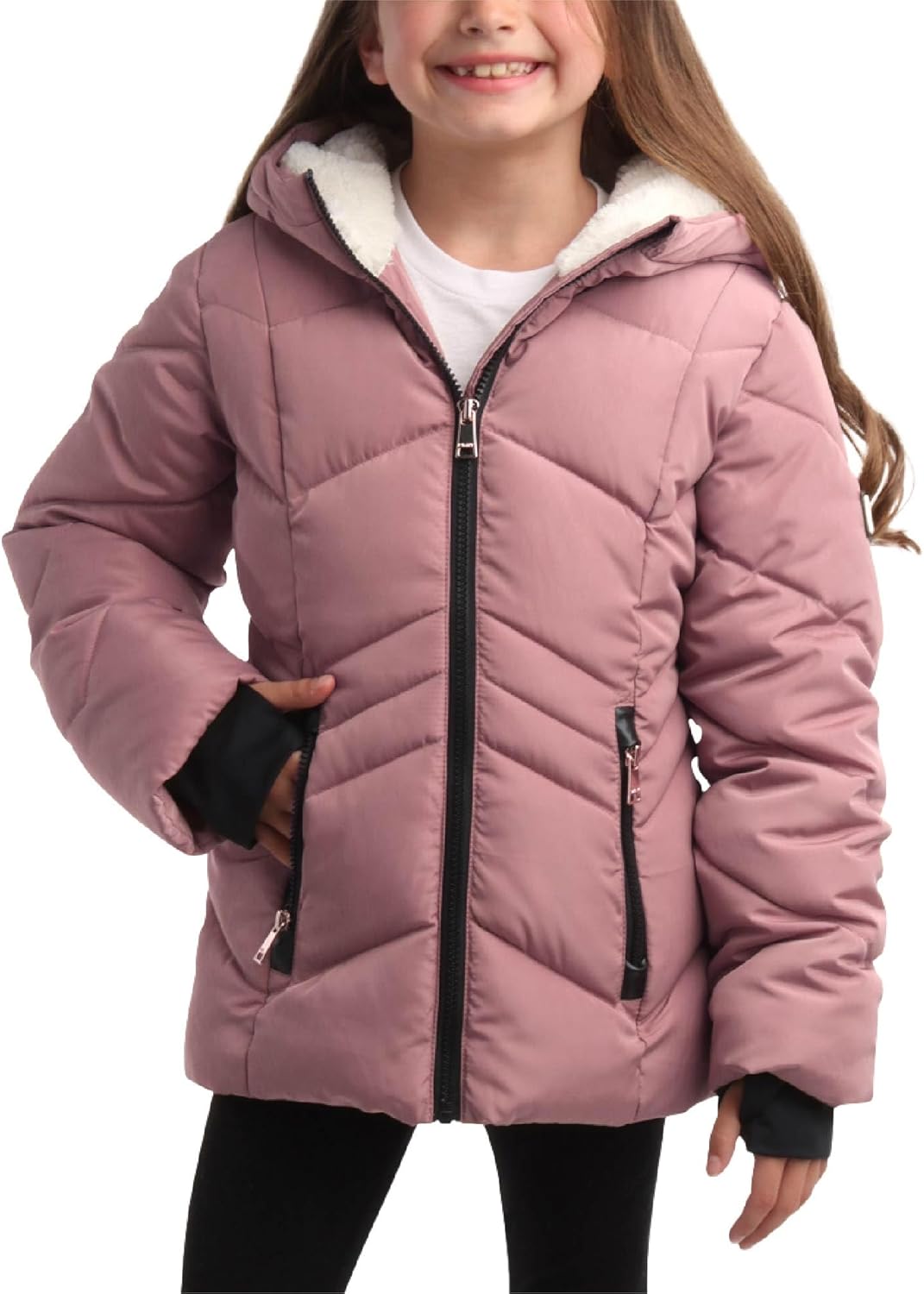 DKNY Girls Winter Jacket - Heavyweight Soft Sherpa Fur Lined Parka Jackets for Girls - Insulated Puffer Winter Coat with Hood