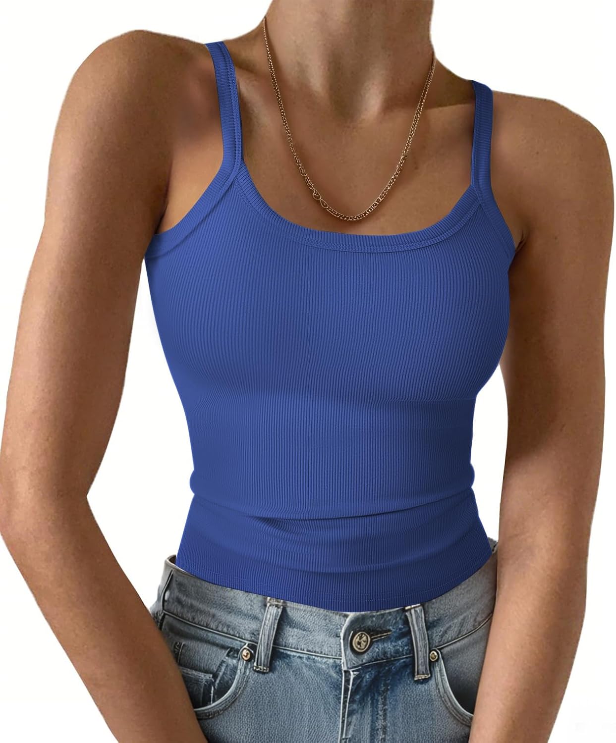 Ribbed Tank Tops for Women 2026 Spaghetti Strap Scoop Neck Slim Fitted Basic Sleeveless Casual Workout Cami Shirts