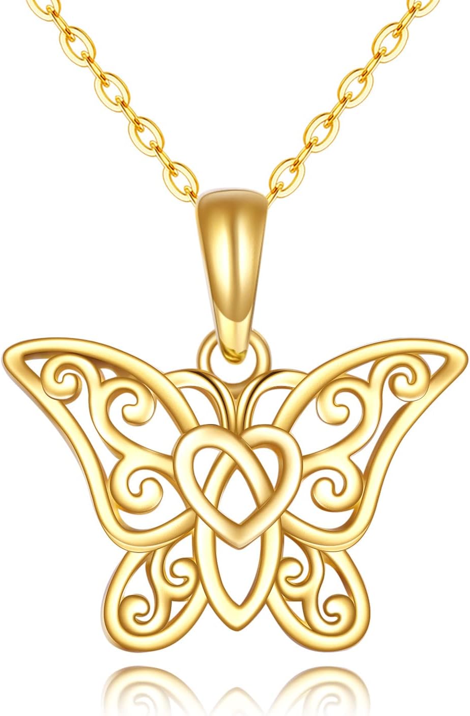 ELFRONT 14K Solid Gold Fox/Pig/Panda Necklace Pendant for Women,Simple Origami Style Moon Fox Necklace Birthday Gifts Jewelry for Boy & Girls (Yellow, 14K-Gold)