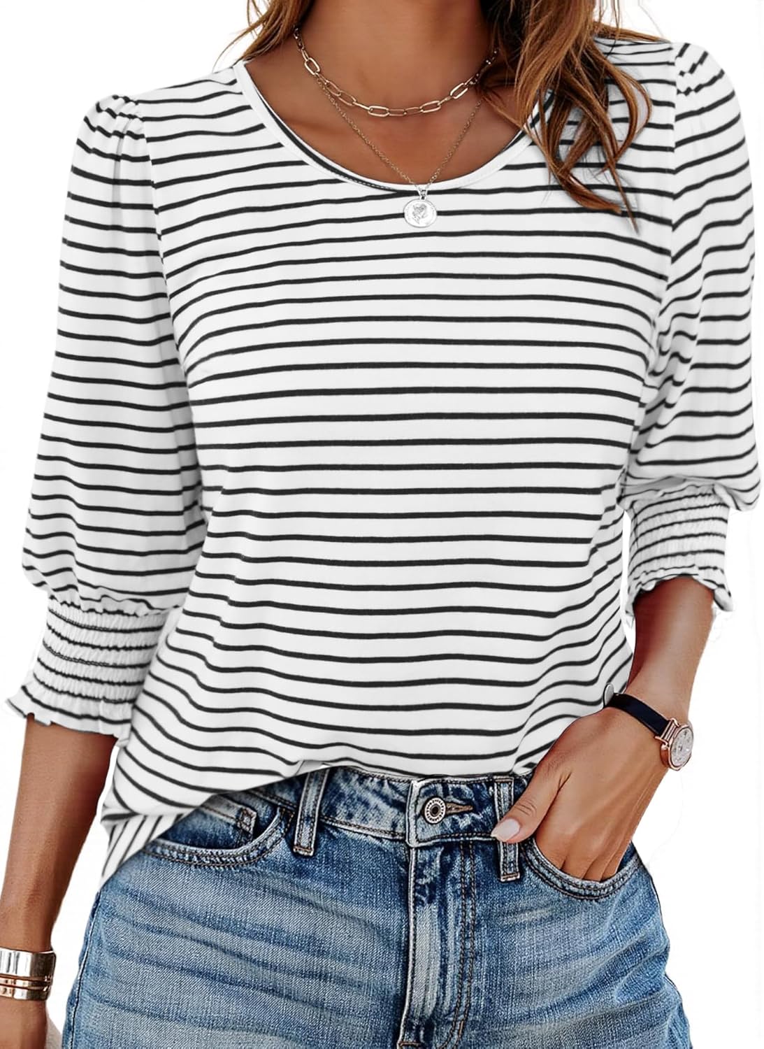 LilyCoco Striped Shirt Women 3/4 Sleeve Boat Neck Casual Tunics Loose Fit T Shirt