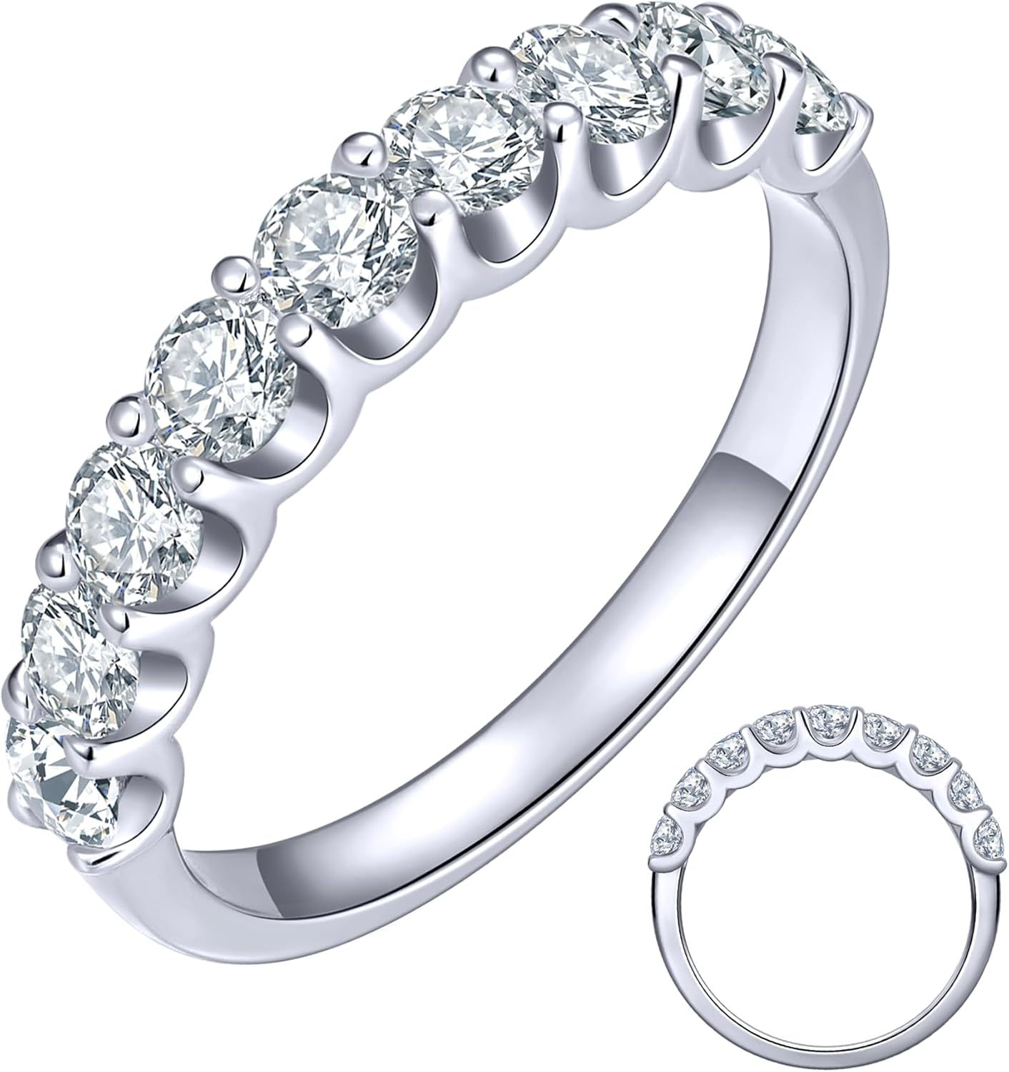 KSTYLE 3.0mm 9 Stones Moissanite Wedding Band for Women |D Color-VVS1| Anniversary Ring 18K White Gold Plated S925 Sterling Silver Ring Moissanite Eternity Band Rings for Women