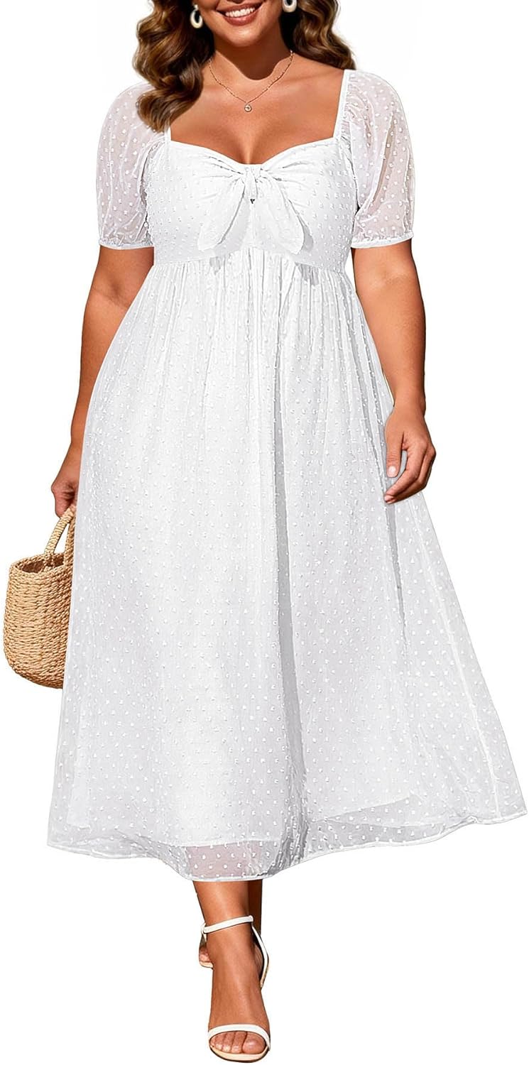 Plus Size Summer Dress - 2026 Graduation Beach Wedding Guest Tie Front Maxi Sundress