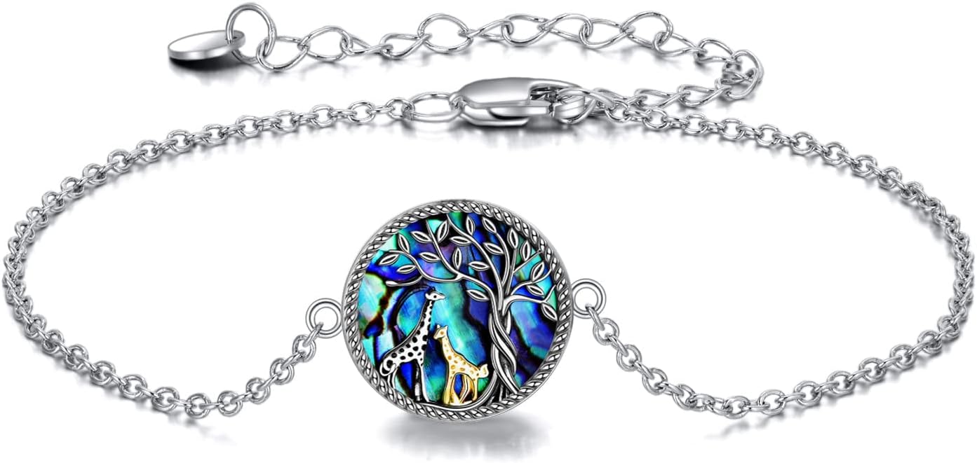 ONEFINITY Giraffe Bracelet Sterling Silver Abalone Shell Giraffe Bracelet Tree of Life Giraffe Jewelry Gifts for Women