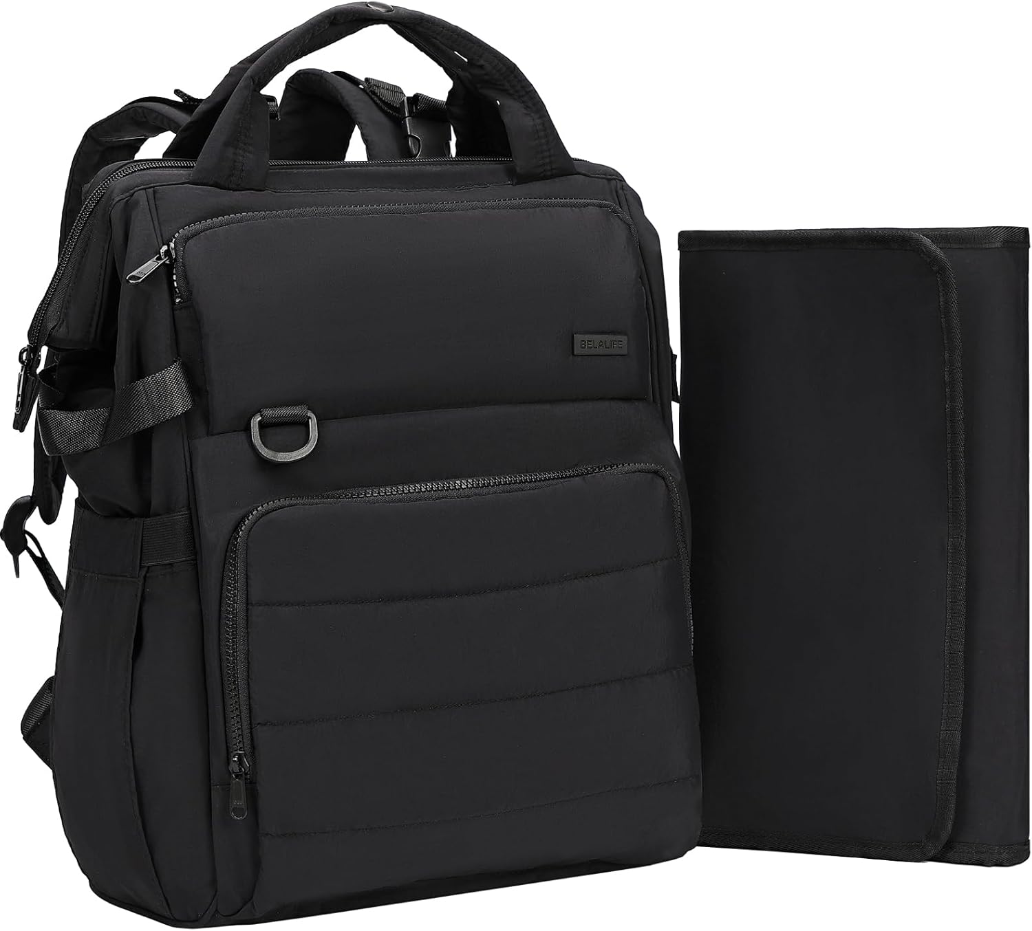 BELALIFE Baby Diaper Backpack Bag, Baby Essentials Travel Backpack for Moms Dads, with Changing Pad, Insulated Bottle Holders & Stroller Straps, Black