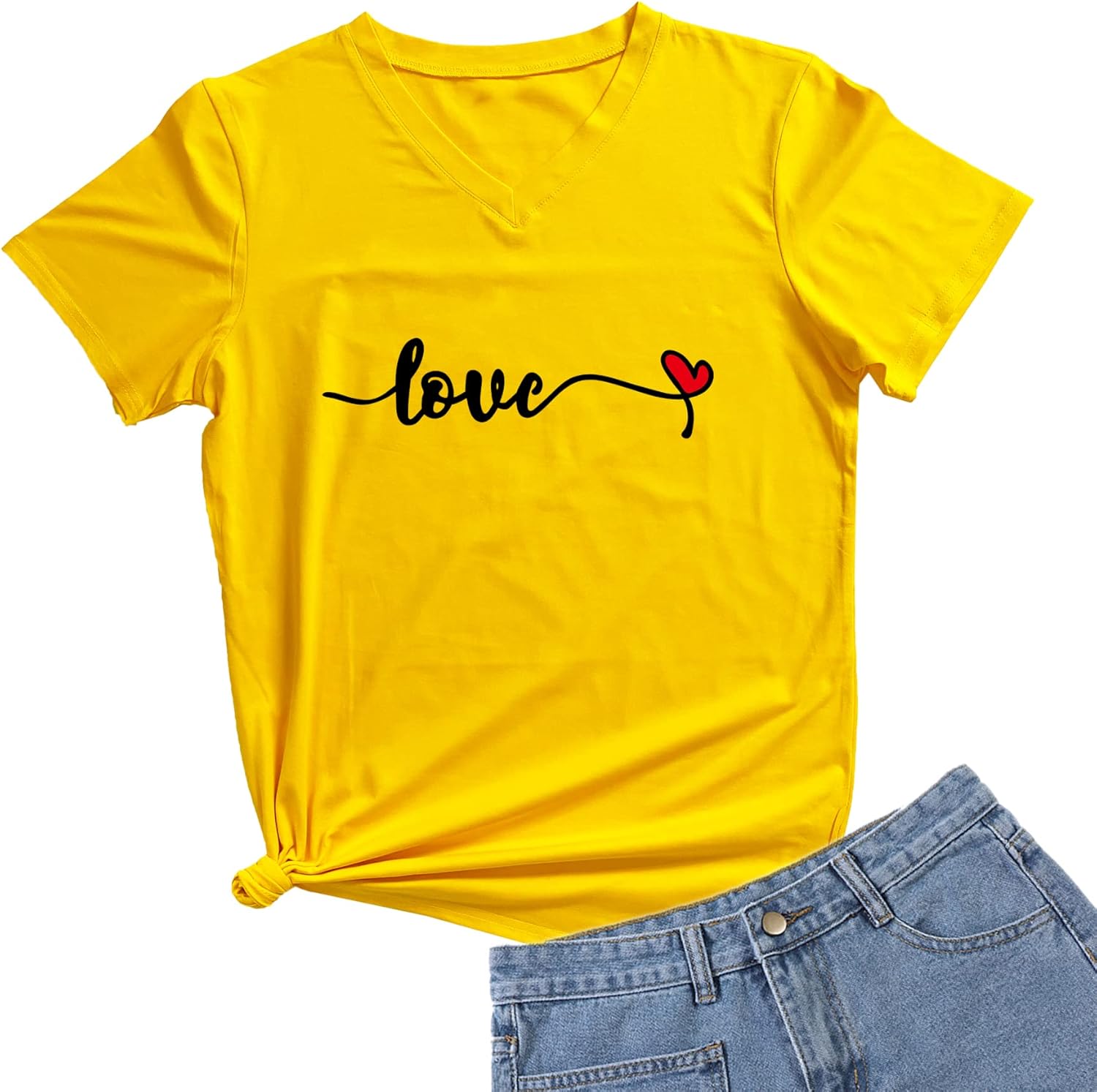 DANVOUY Women's T-Shirts Funny Graphic Short Sleeve Cute Top Tees V-Neck Shirt
