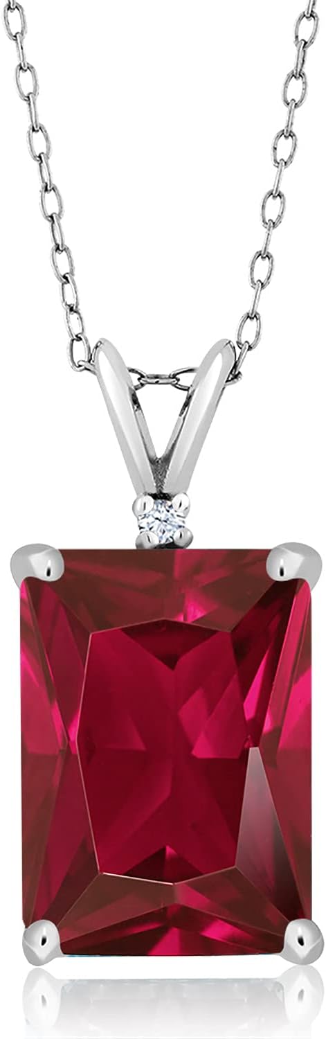 Gem Stone King 5-13 Cttw Gemstone Birthstone Pendant Necklace for Women | 925 Sterling Silver | 14X10MM Emerald Cut and 1.5MM Round Accents | With 18 Inch Silver Chain