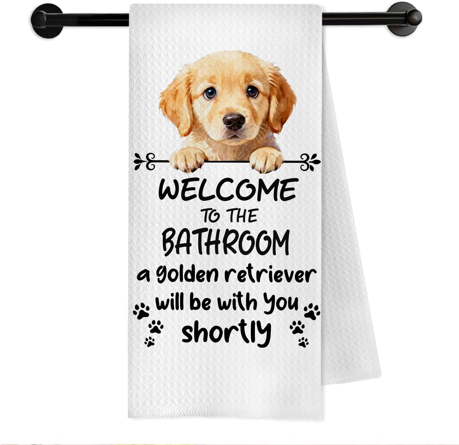 Funny Golden Retriever Dog Bathroom Hand Towels, Gifts for Golden Retriever Lovers, Welcome to The Bathroom Decorative Hand Towels for Bath Room Toilet Washroom Restroom, 16x24 Inch