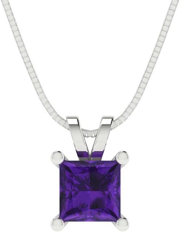Clara Pucci 14K White Gold Plated Solitaire 18" Box-Chain Necklace - Sterling Silver 0.5ct Princess Cut Amethyst Pendant