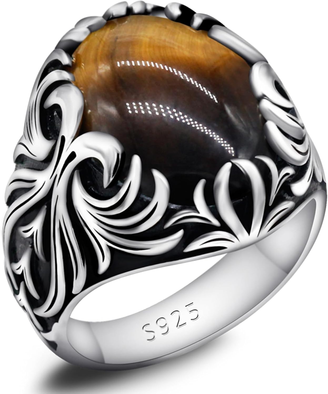 Artever S925 Sterling Silver Blue Tiger Eye Men's Ring Engraving Design Jewelry Handmade Unique Birthday Gift Everyday Wear Ring Size 8-12