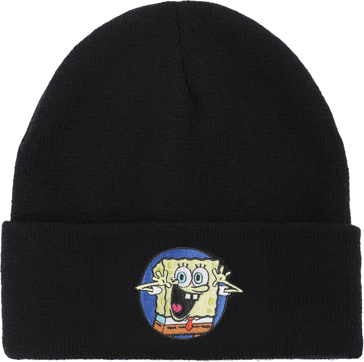 Spongebob Square Pants Embroidered Circle Character Patch On Black Cuff Beanie