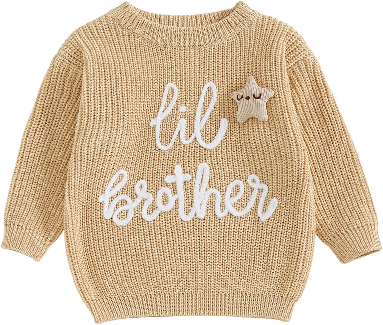 Newborn Baby Boy Knit Sweater Outfit Little Lil Brother Long Sleeve Letter Embroidery Top Sweatshirt Infant Fall Clothes