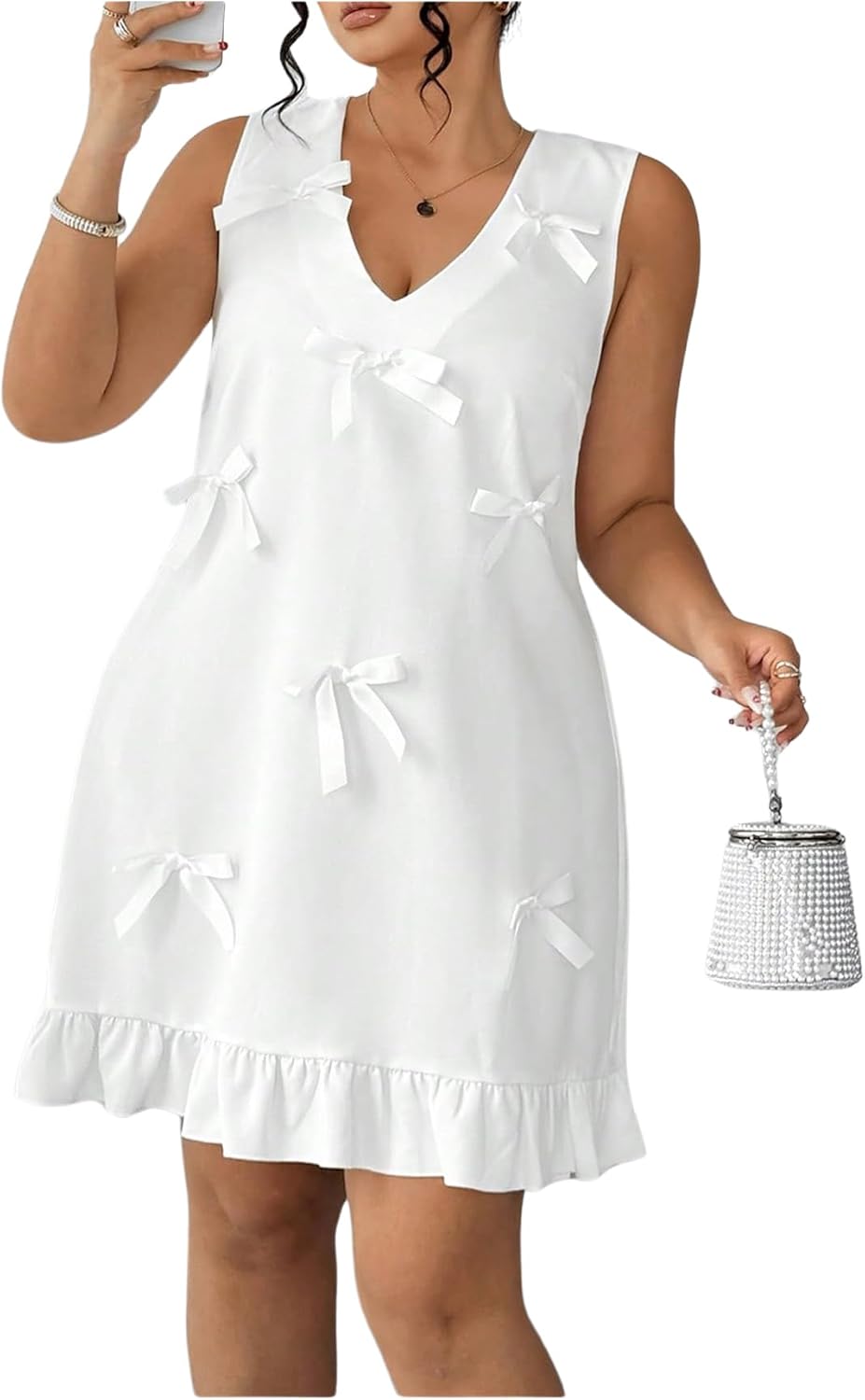 SHENHE Women's Plus Size Bow Dress Sleeveless Ruffle Hem V Neck Flowy Elegant Shift Dress
