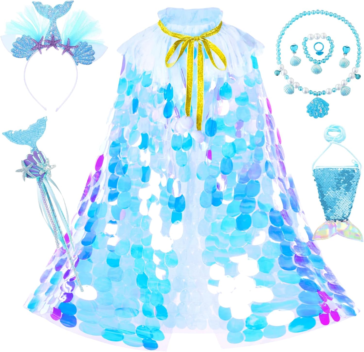 Princess Dress Up Toys Rainbow Mermaid Cape Kit 9 Pcs Gift Set for Little Girls 3-8 Years