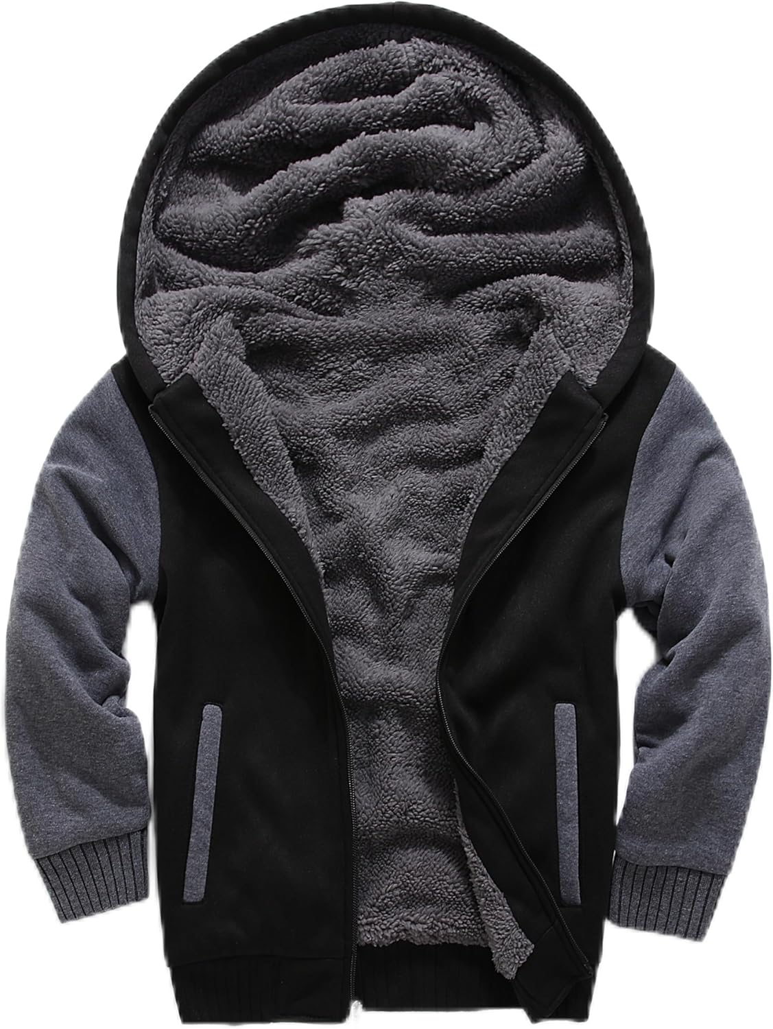 ZITY Boys Zip Up Hoodie Fleece Jacket Kids Sherpa Lined Sweatshirts Outerwear Unisex Warm Winter Coat 6-15 Years Old