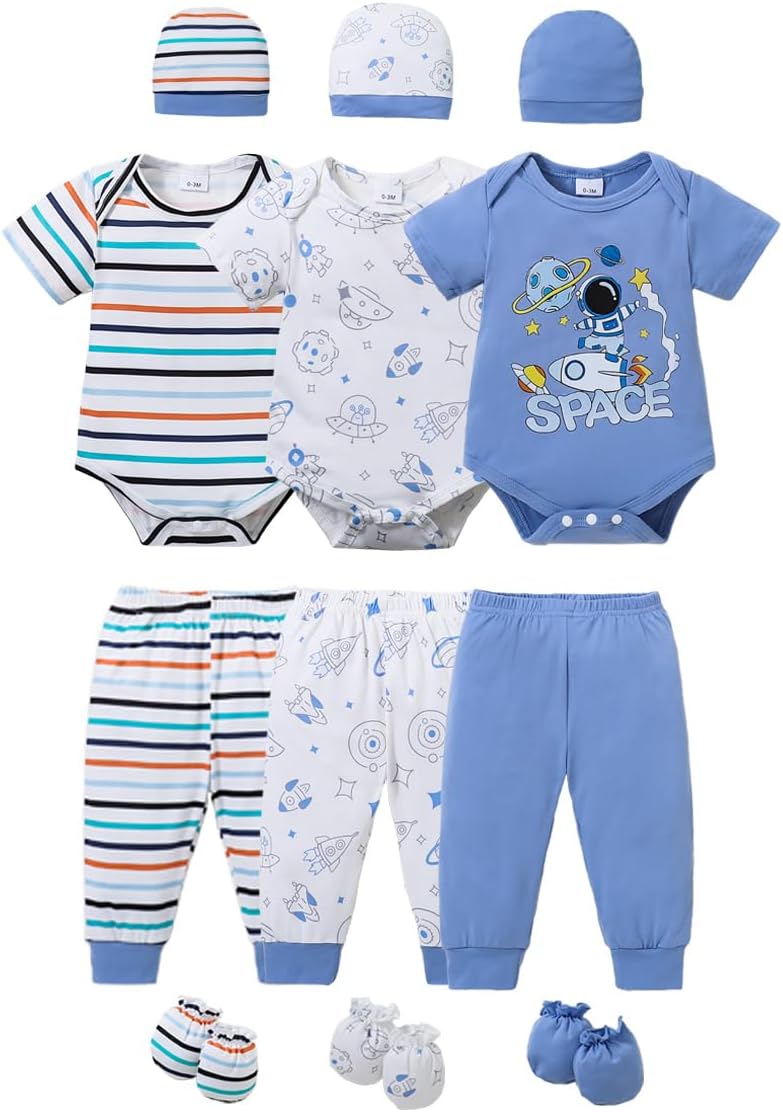 Newborn Baby Boys Clothes Outfits Funny Pattern Romper Pants Set Infant Unisex Baby Clothing 12Pcs
