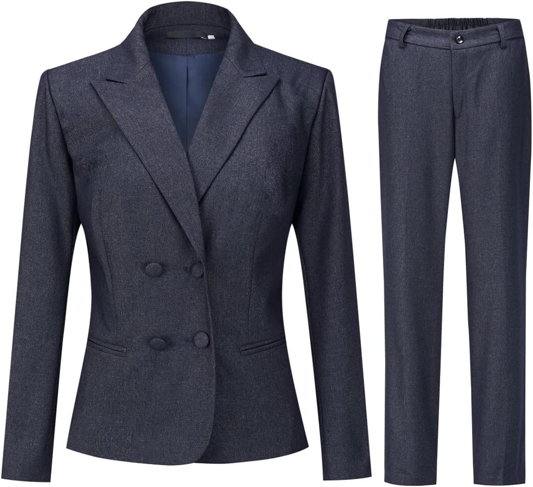 YYNUDA Women's Business Suit Set Double Breasted 2 Piece Office Work Blazer Pantsuit