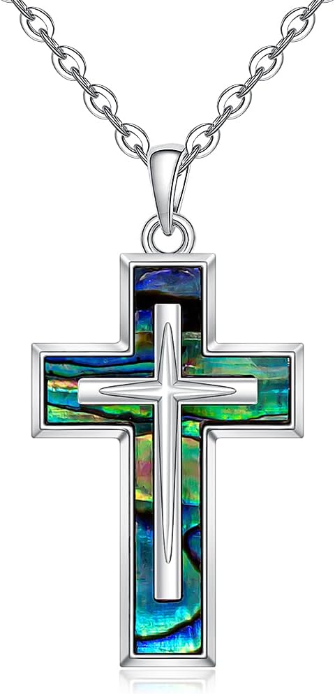 Abalone Cross Necklace for Women Sterling Silver Cross Pendant Jewelry Gifts 20 Inch Thicker Chain