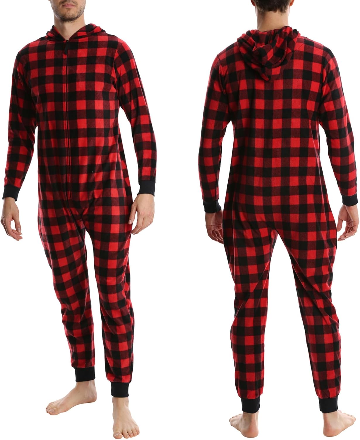 Men’s Fleece Onesie – Full Zip Hooded Union Suit – Soft Adult One-Piece Year-Round Lounge Set