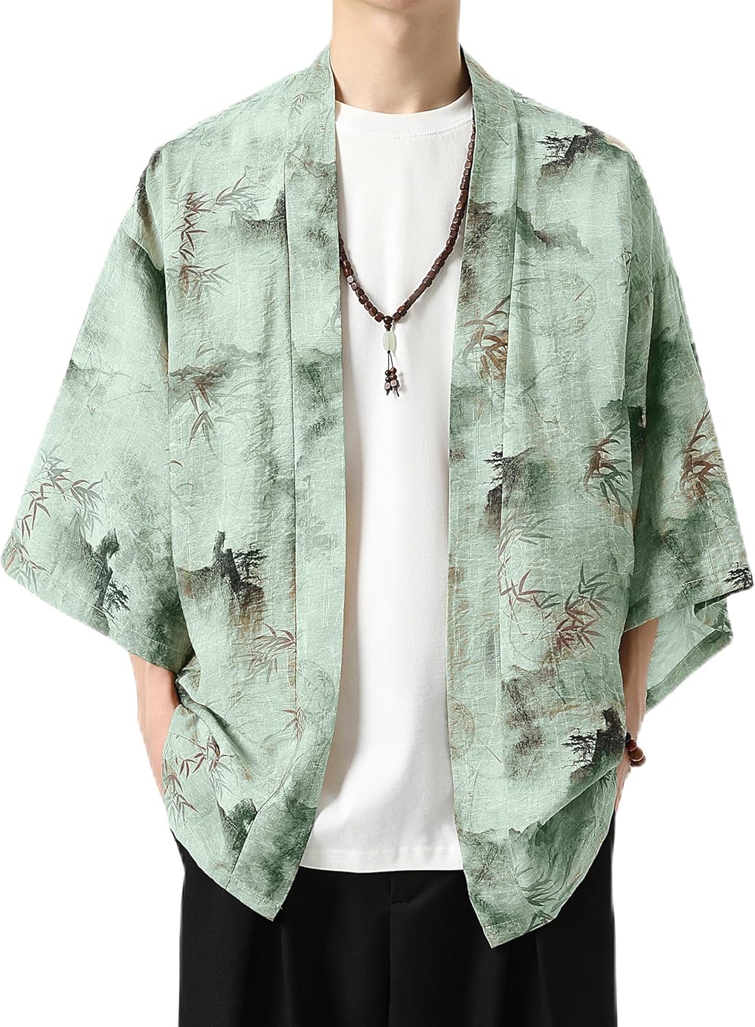 PRIJOUHE Kimono For Men Japanese Style Kimono Robe Jacket Lightweight Open Front Cardigan Seven Sleeve Yukata Coat