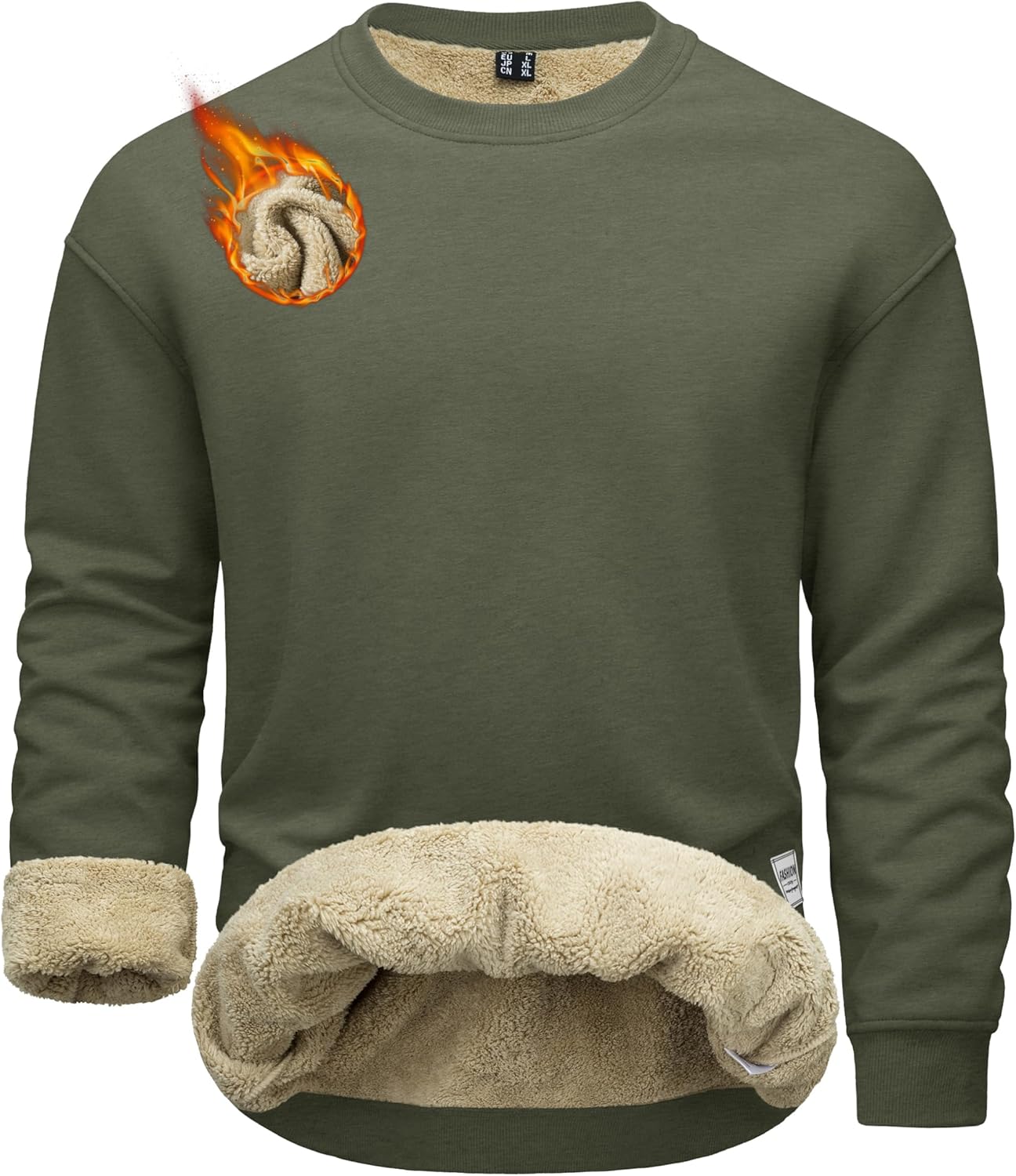 MAGCOMSEN Mens Crewneck Sweatshirt Sherpa Fleece Lined Pullover Casual Winter Warm Heavyweight Cotton Sweatshirts