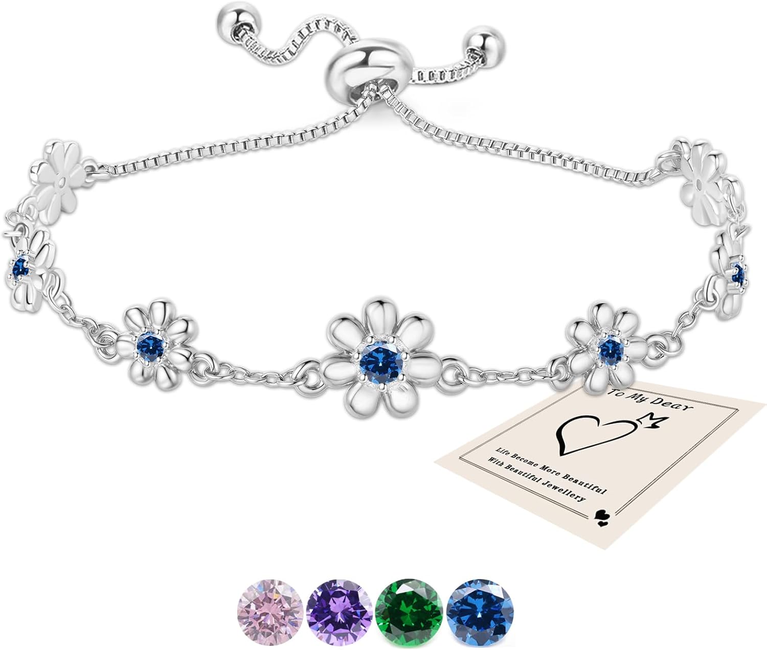 Sliver Bracelets for Women, Dainty Flower Bracelet Adjustable Cute Daisy Charm Adjustable Sparkly Rhinestone Chain Bracelet Trendy Jewelry Gift for Birthday Anniversary Christmas