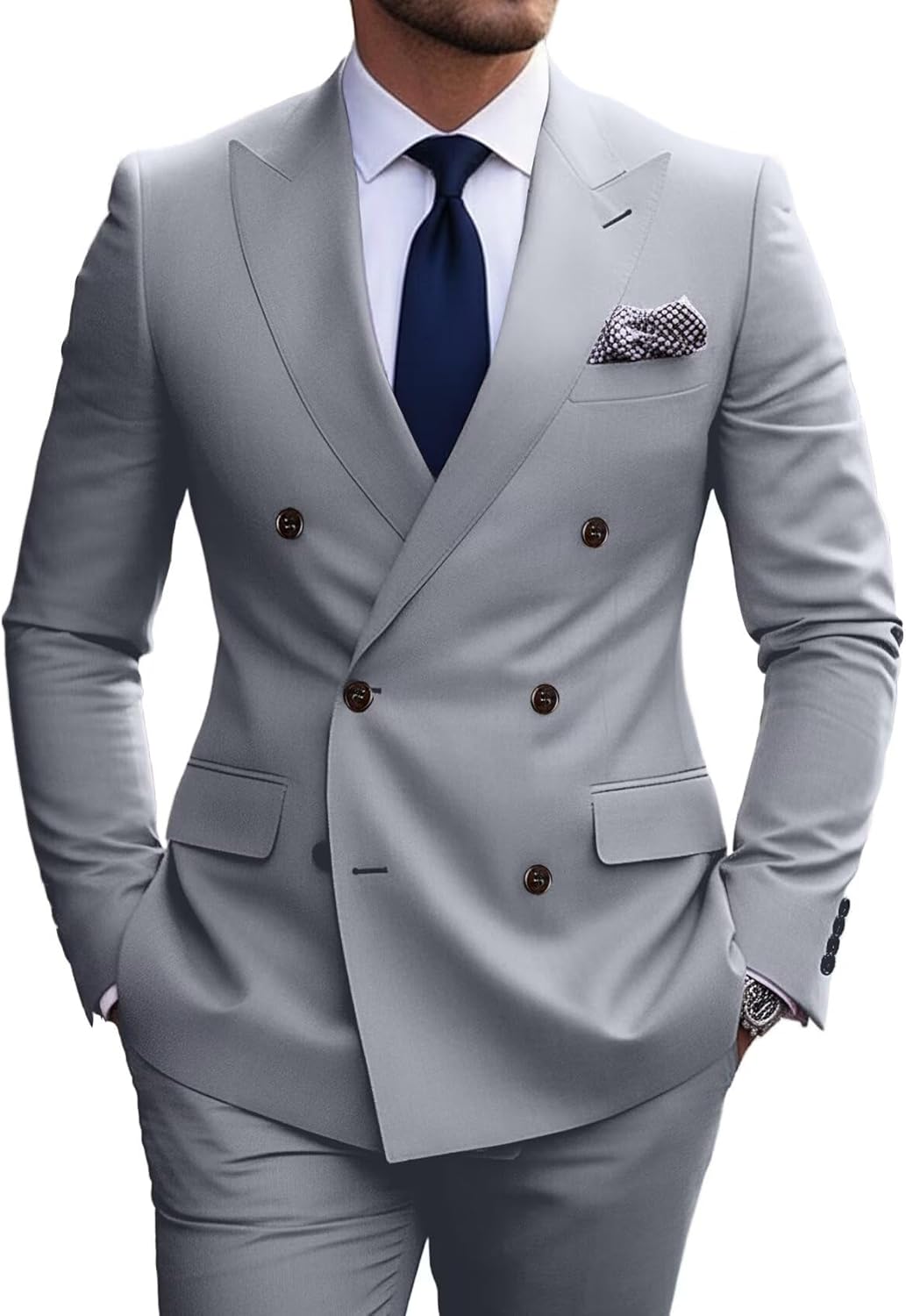 Mens Suit Slim Fit Formal 2 Piece Double Breasted Suit Men Business Tuxedo Set Wedding Prom Groom Suits