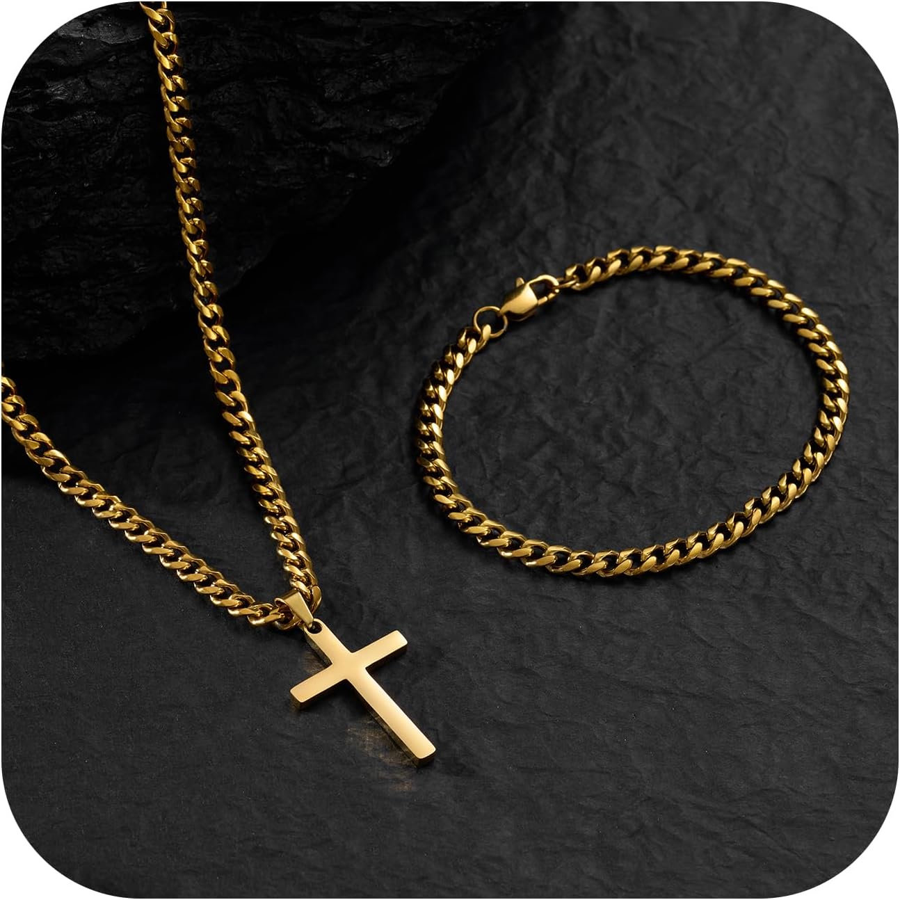 NORBU Stainless Steel Cross Necklace and Bracelet Set for Men, Cuban Link/Wheat/Figaro/Box Chains 20" Length, Bracelet 7 1/2" and 8" Length, No Tarnish & Durable Mens Religious Gift