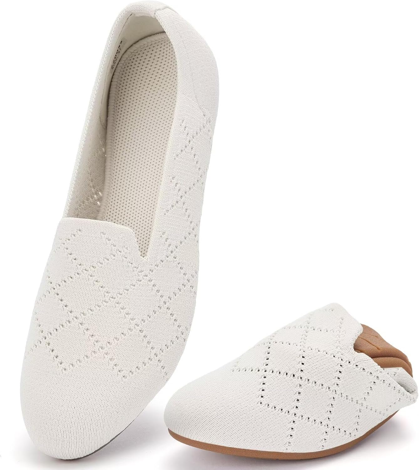 poemlady Women’s Ballet Flat Shoes Dress Shoes Knit Round Toe Slip On Ballerina Walking Flats Shoes for Woman Low Wedge Casual