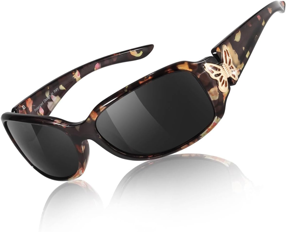 TJUTR Polarized Sunglasses for Women with Wrap Around Butterfly Design, Trendy Jackie-O Style for UV400 Protection