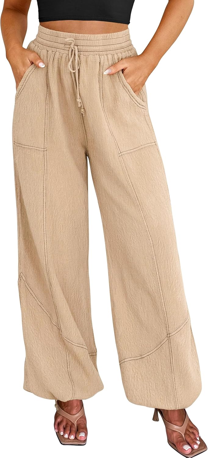 Bsubseach Women's Wide Leg Pants Drawstring High Waist Baggy Palazzo Pants Casual Lounge Trousers with Pockets