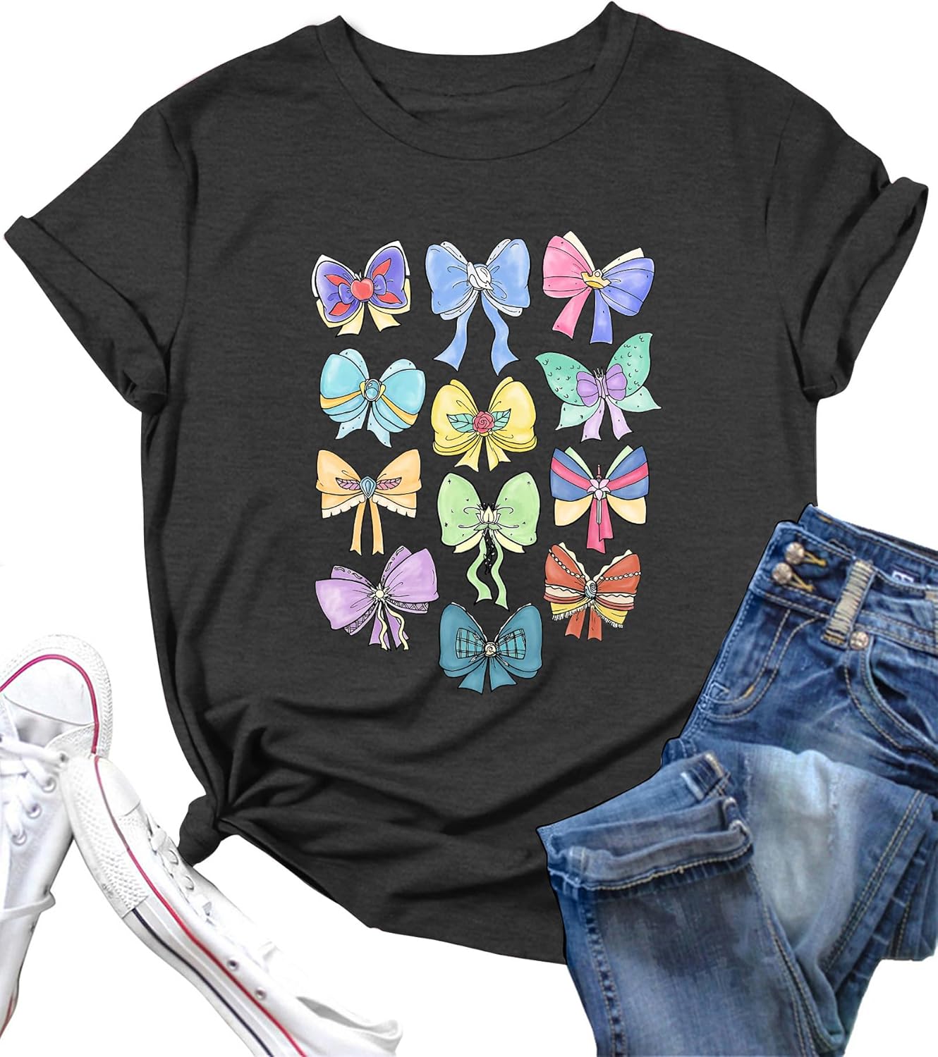 LAZYCHILD Magical Shirts for Women: Magic Kingdom T-Shirt Princess Bow Shirt Family Vacation Holiday Short Sleeve Tops