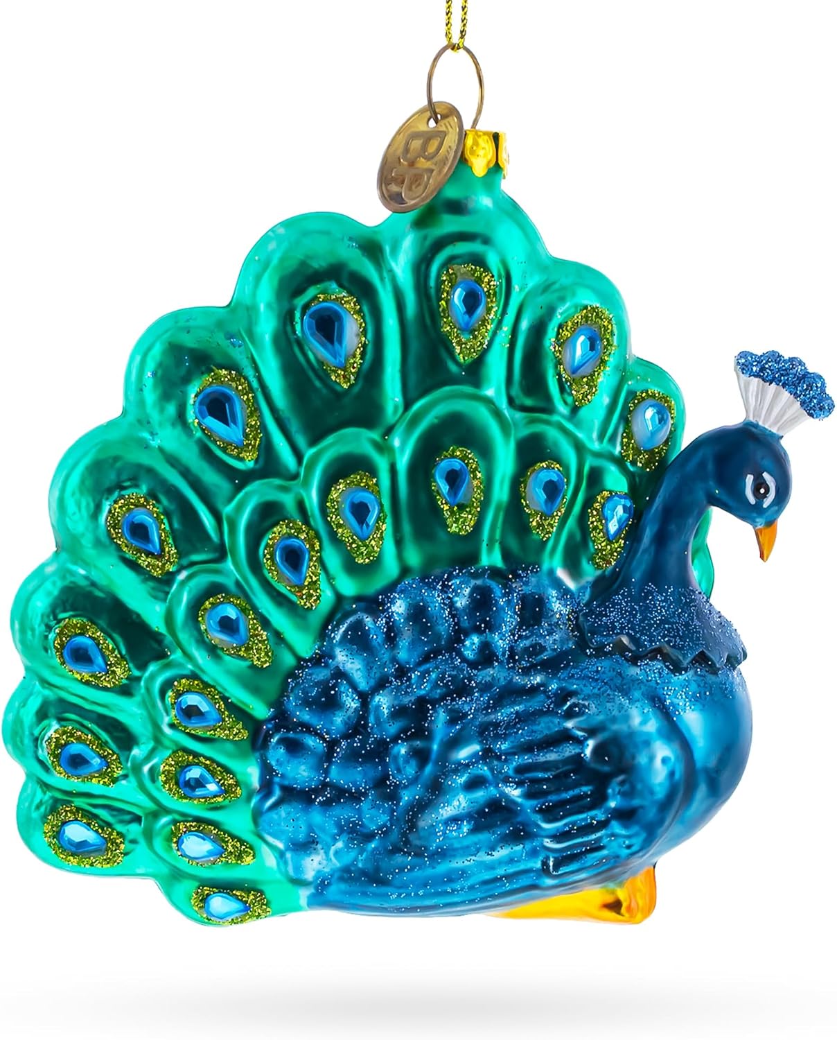 Chic Peacock Blown Glass Christmas Ornament