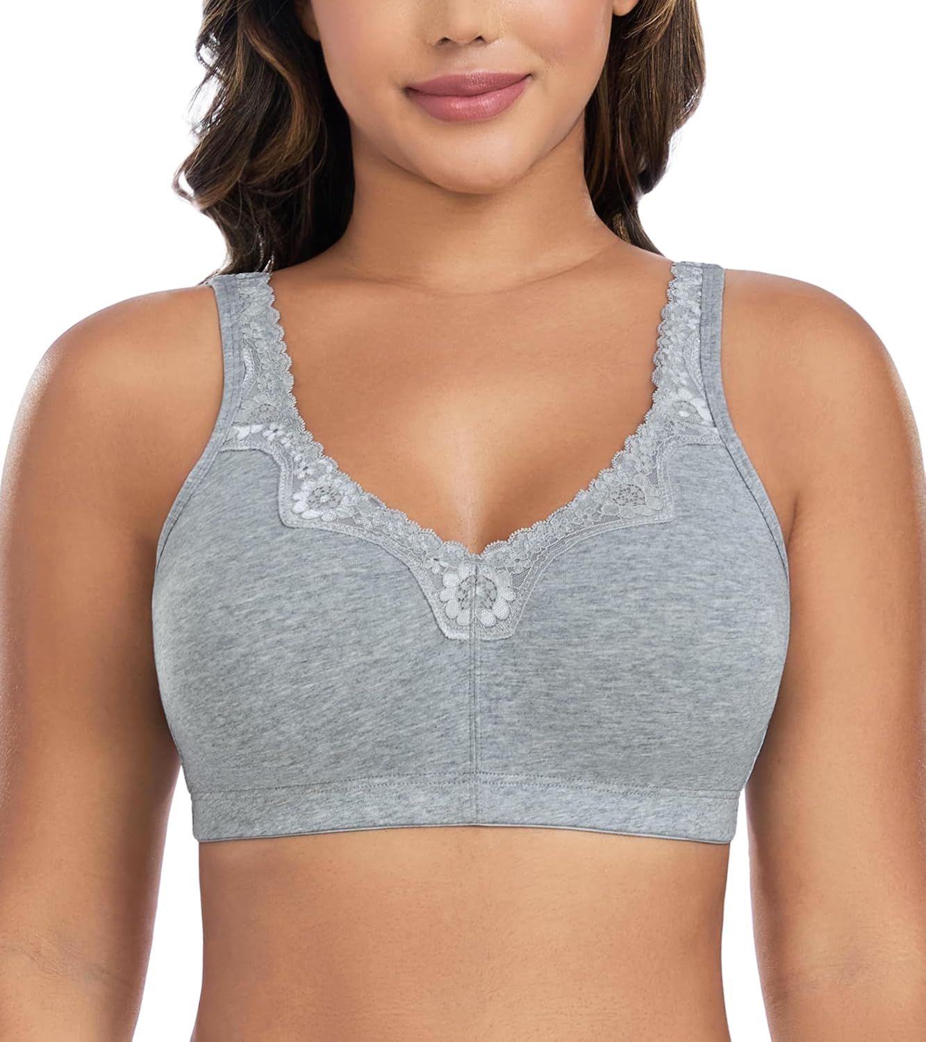 DotVol Women's Comfort Embroidered Lace Non Foam Wirefree Cotton Everyday Bra