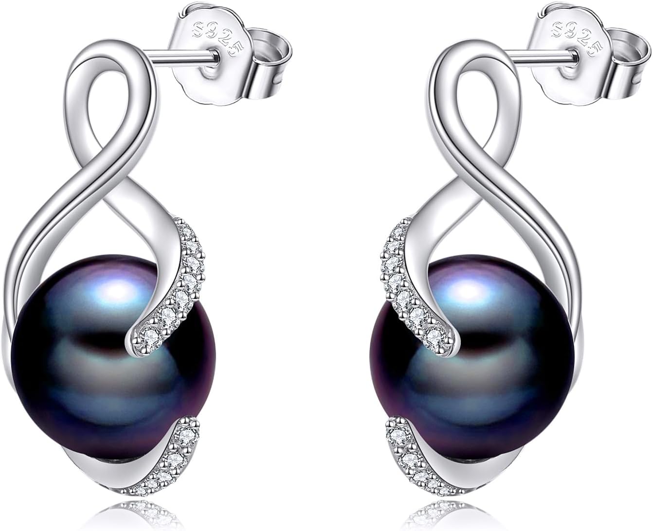 Sterling Silver 7-8MM Black Pearl Drop Earring Stud for Her, s925 Silver Black Tahitian Pearl Infinity Drop Earrings with Lab Created Diamond for Women Ladies Mothers Day Anniversary,18+2 inch