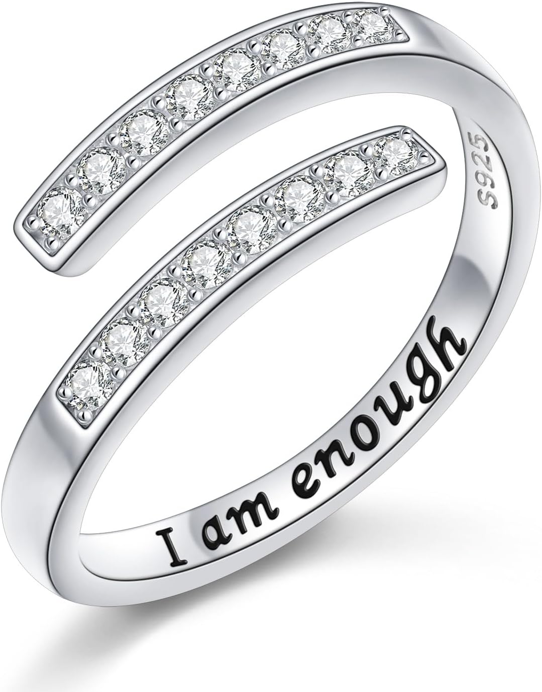S925 Sterling Silver Inspirational Ring I Am Enough Adjustable Ring Women Gifts