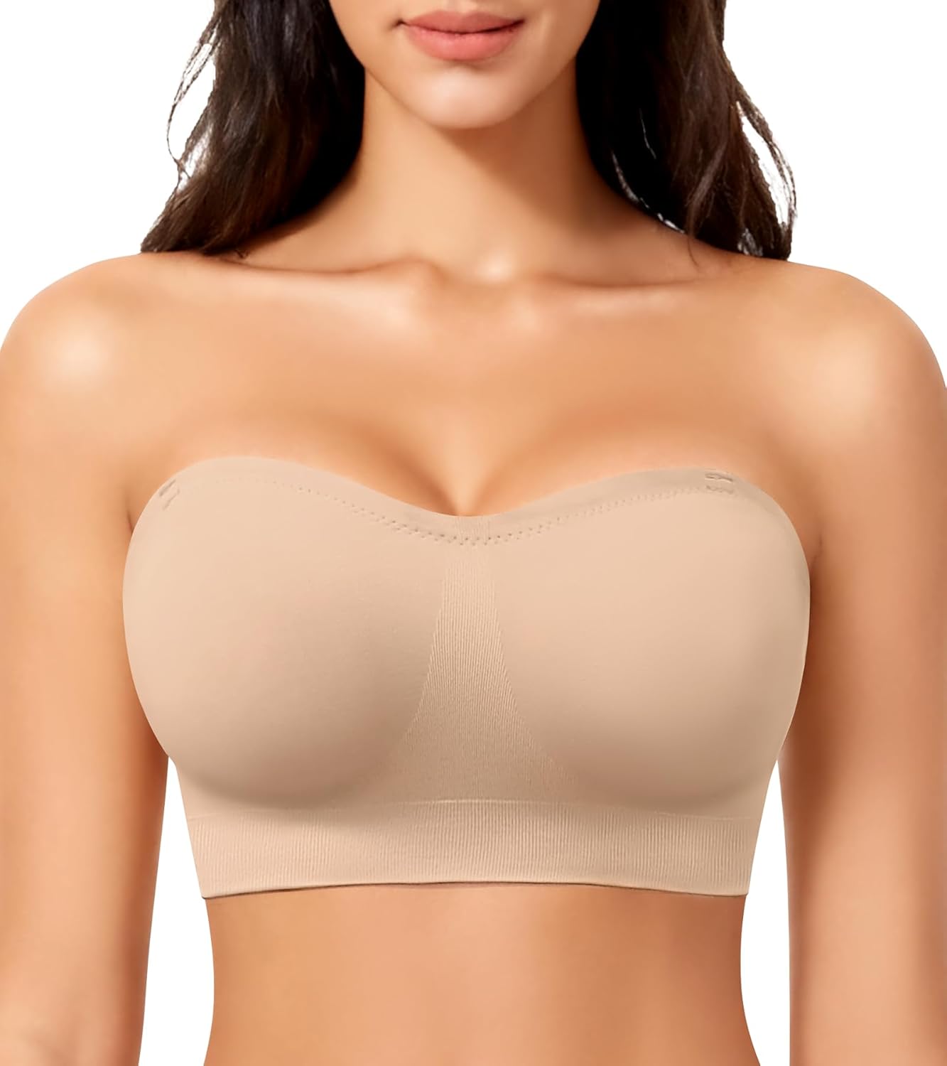 Strapless Bras for Women, Wireless Push Up Bandeau Bralette, Seamless Padded Tube Top Anti-Slip Everyday Bra