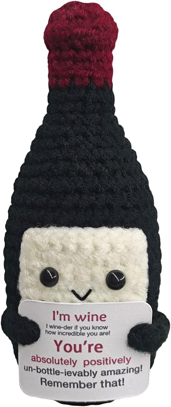 Funny Crochet Mini Wine Bottle - Valentine's Day Gift for WineLovers,Unique Handmade Emotional Support Wine Gifts,Cute Desk & Home Decor for Him or Her,Creative w-i-n-e Themed Gift Idea