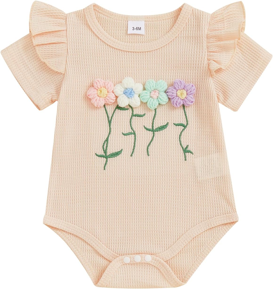 Newborn 3 6 12 18 Months Baby Girl Romper Summer Clothes Waffes Outfit 3D Flower Onesie Bodysuit Infant Girl Clothes