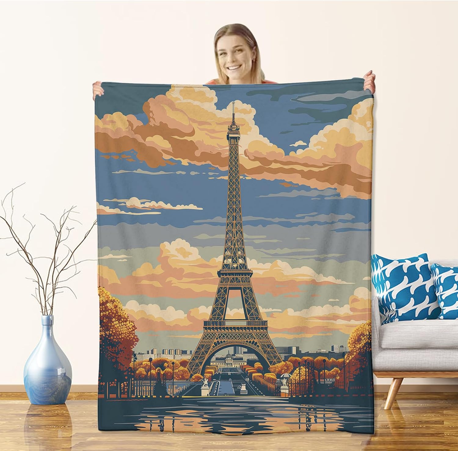 - Material: Made of 100% flannel, suitable for both boys and girls skin. Soft and warm, more breathable and lighter than ordinary cotton Paris Blankets. This plush Paris Blanket is super comfortable, durable, and lightweight. Not easy to deform, anti-fading, no lint. Soft flannel blanket, cute and practical, can be used in multiple scenarios and will always be with you.