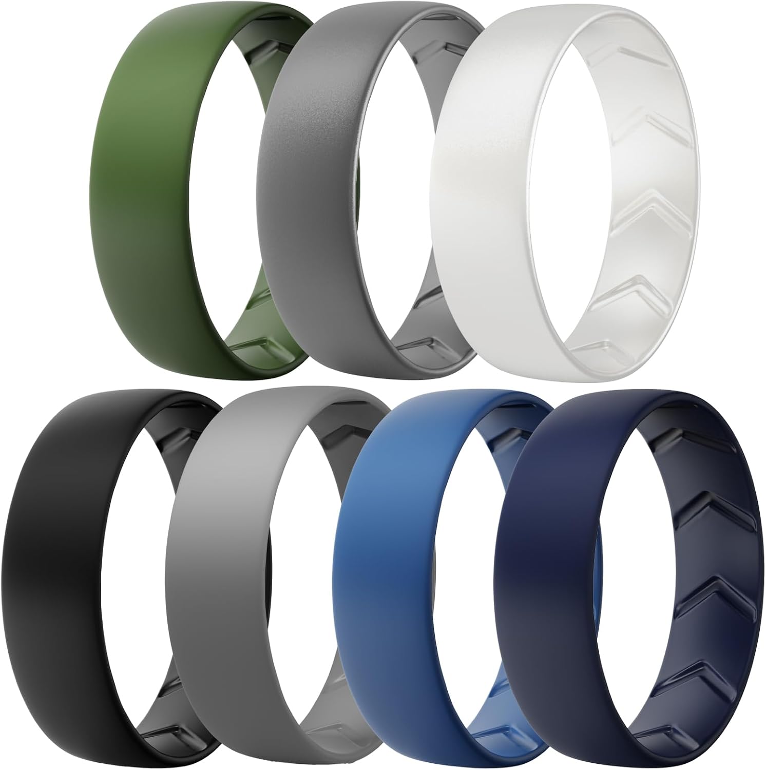 Silicone Ring Men,Inner Arc Ergonomic Breathable Design Mens Rubber Wedding Band,Engagement Bands 8.5mm Wide,2mm Thick - 1/4/5/6/7 Variety Multipack