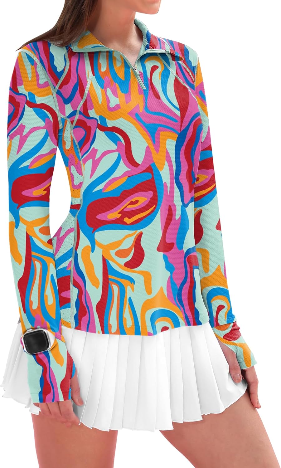 IECCP Womens Long Sleeve Golf Shirts Sun Protection 1/4 Zip Pullover Summer Quick Dry Athletic Hiking Running Workout Tops