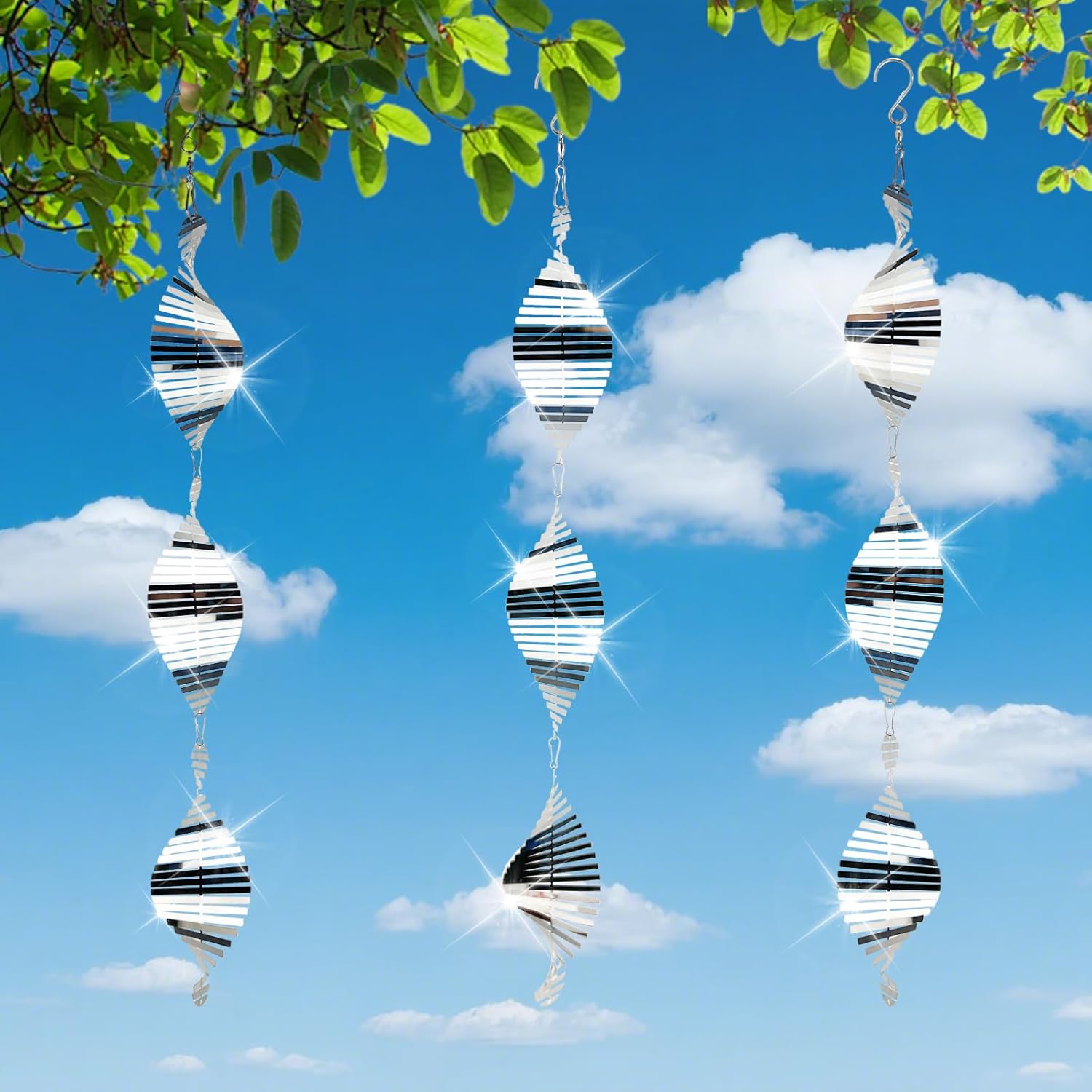 - 【Effective Bird Scare devices】These spinners utilize wind motion and shiny 3D reflections to safely scare away unwanted birds such as sparrows, swallows, woodpeckers, and more. For the best effect, please hang it in sunny, breezy area.