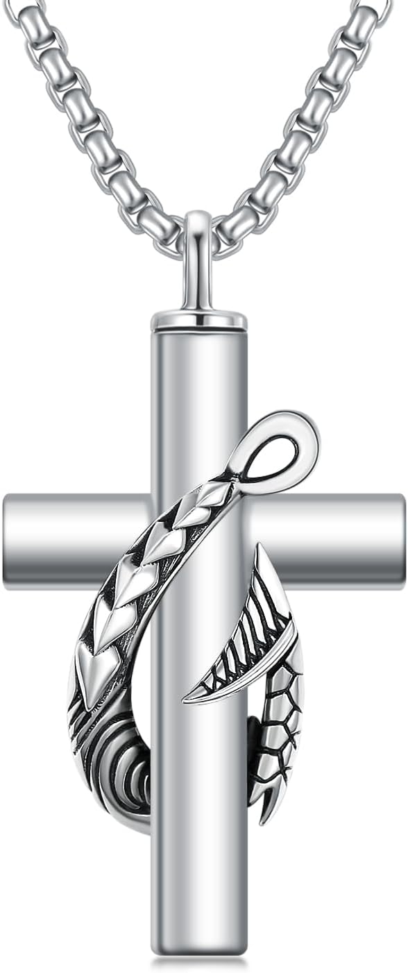 SIMONLY Cross Urn Necklace for Ashes 925 Sterling Silver Fish Hook Cremation Pendant Necklace Cross Faith Memorial Keepsake Jewelry for Women Men