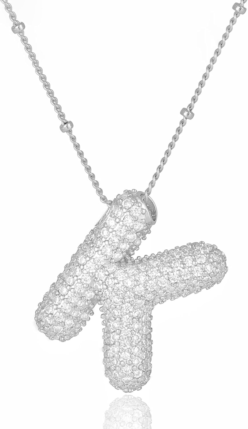 Bubble Letter Necklace Gold Balloon Initial Pendant Necklace Dainty Zirconia Alphabet Name for Women Birthday Jewelry Gifts