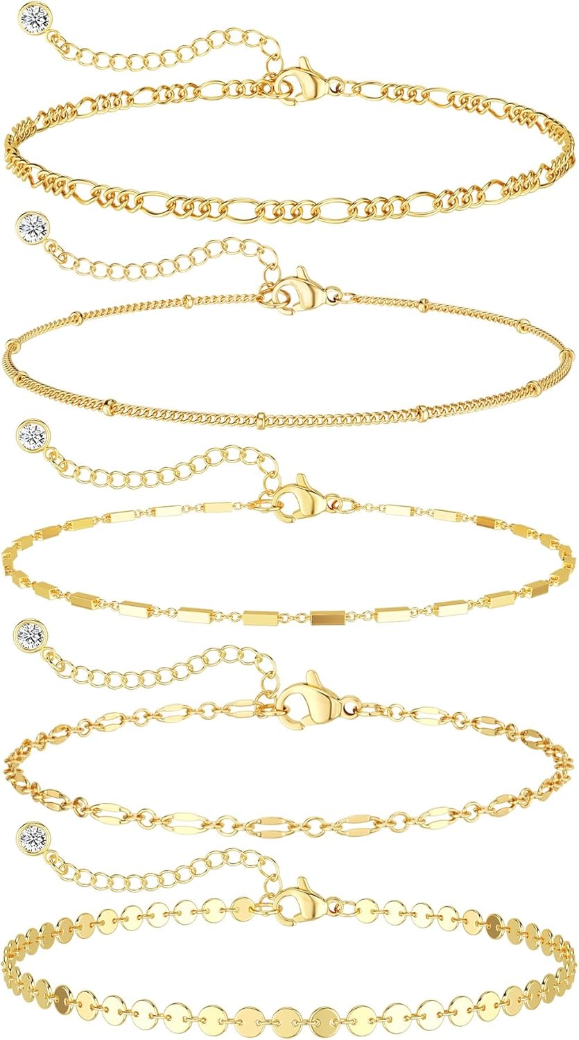 DEARMAY 14K Gold Plated Bracelets for Women, Jewelry Sets Cute Tennis Beaded Bracelets Cuban Link Paperclip Chain Dainty Bracelet Pack Gifts
