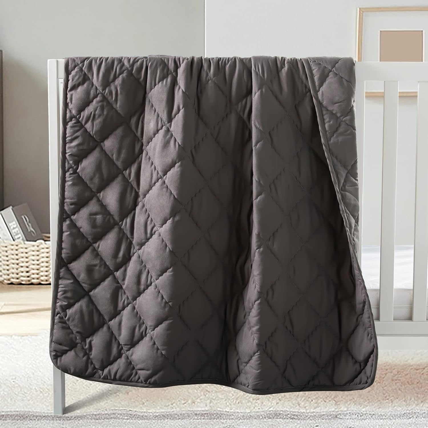 FLXXIE Down Alternative Toddler Comforter, Lightweight, Machine Washable and Warm Baby Crib Quilted Blanket for Stroller, Travel, 39x47 Inches, Dark Grey
