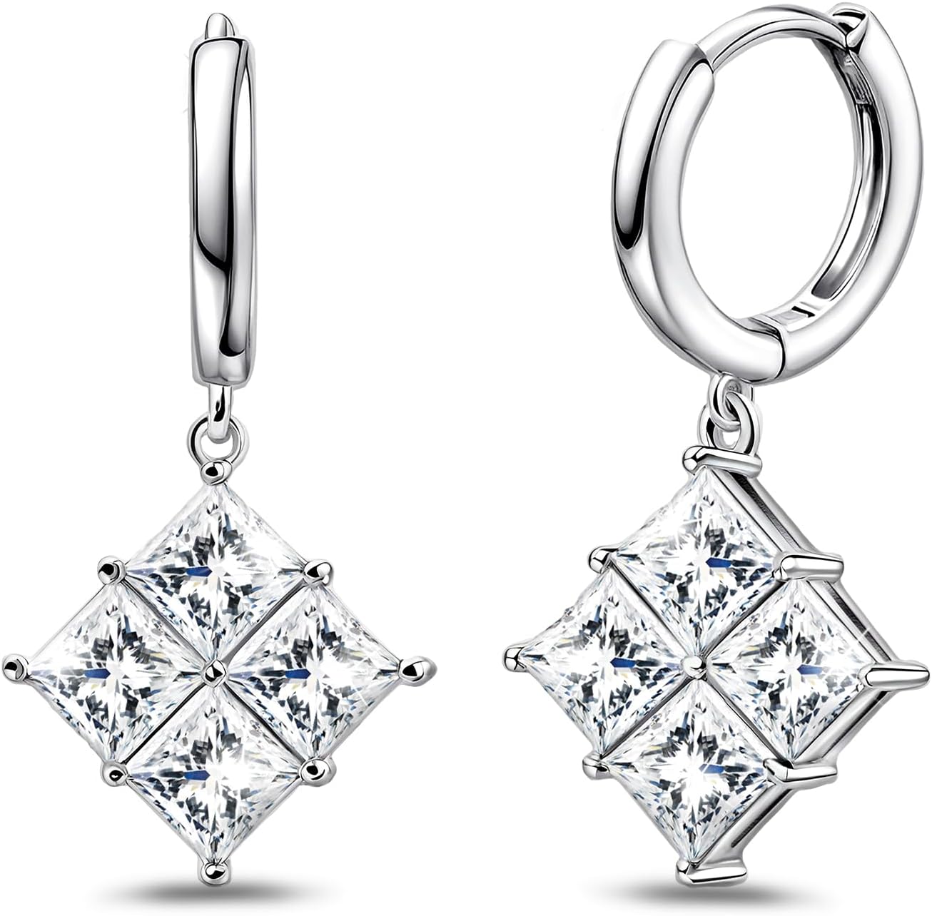 Dangle Hoop Earrings for Women - Sterling Silver Sparkly Square Cubic Zirconia Earrings Hypoallergenic Loop Earring with Dangling for Sensitive Ears Dainty Shiny Fashion Jewelry Gifts for Her Wife Mom