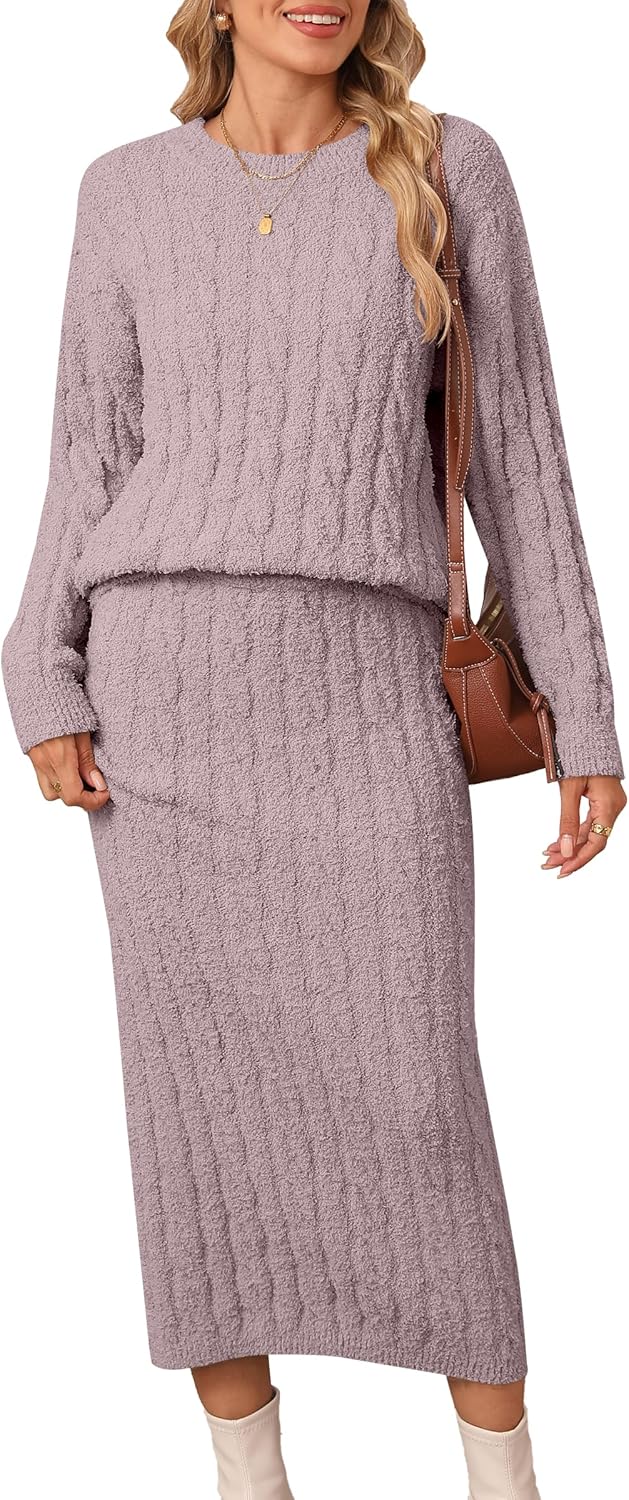 Women's 2 Piece Sweater Set Outfits Long Sleeve Pullover Top Bodycon Maxi Long Skirt Knit Dresses 2025 Fall