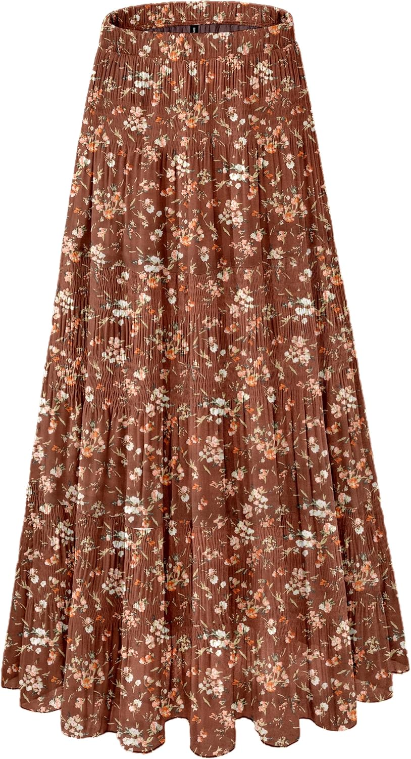 Women's Chiffon White Flowy Maxi Skirts Boho Fall Elastic Waisted Pleated A Line Long Skirt for Women 2025